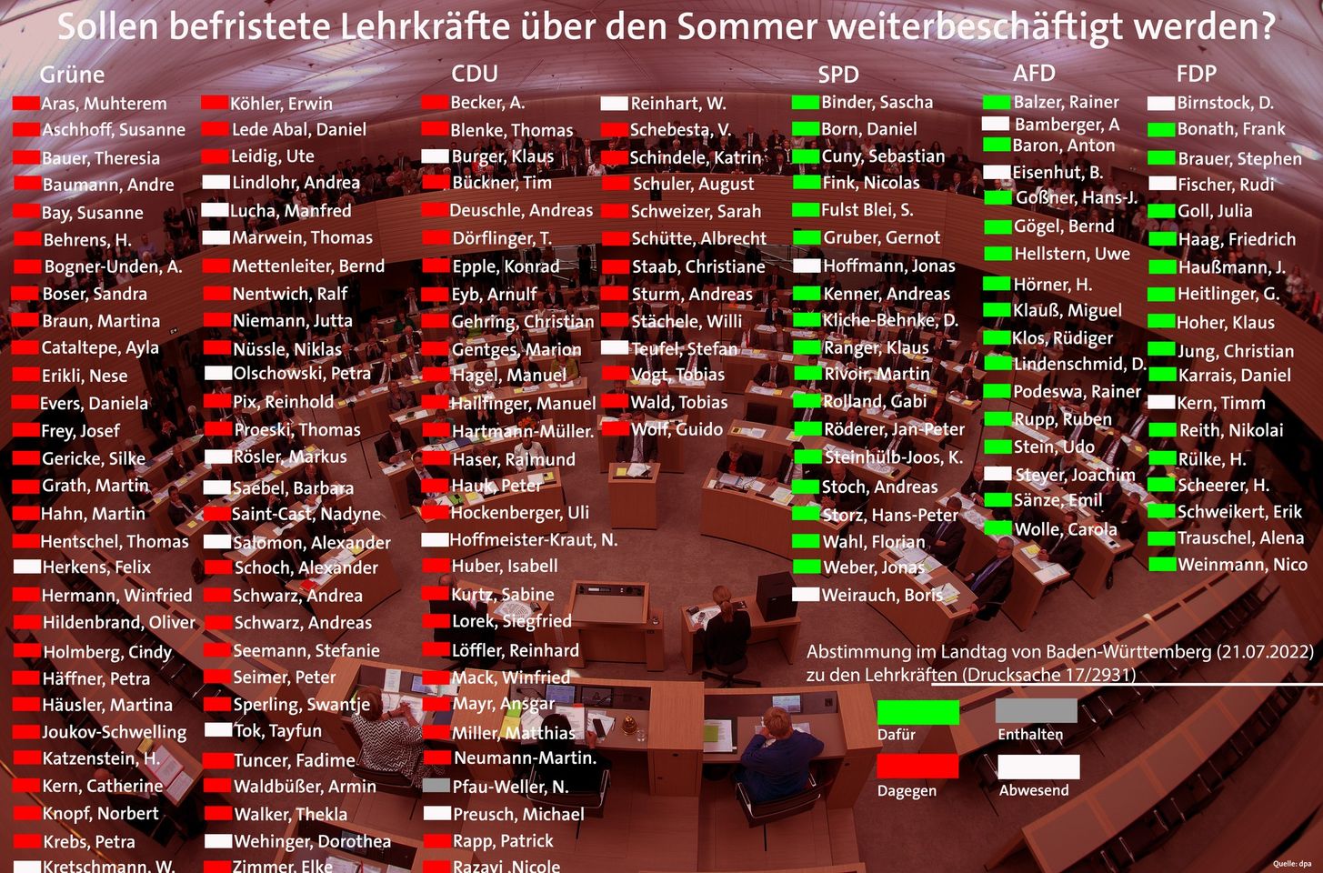Hintergrund: Rund 4.000 Lehrkräfte in Baden-Württemberg werden im Sommer vor die Türe gesetzt. Die unsägliche Praxis, befristet angestellte Lehrkräfte über die Sommerferien nicht weiterzubeschäftigen, muss endlich beendet werden! Nicht zuletzt, weil die betroffenen Lehrkräfte so dringend gebraucht werden wie nie und nach den Ferien wieder eingestellt werden. Heute hätten Grüne und CDU die Möglichkeit gehabt, diesem Skandal ein Ende zu bereiten. Doch leider haben sich die Regierungsfraktionen anders entschieden.