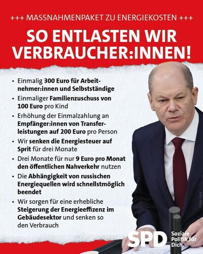Im Kampf gegen die stark gestiegenen Energiepreise setzt die Koalition auf mehr Effizienz und zusätzliche Entlastungen für die Menschen – zum Beispiel weniger Energiesteuern, ein Gehaltszuschuss, höhere Einmalzahlungen für alle, die wenig Geld haben. Und: Ein 9-Euro-Monatsticket für Bus und Bahn.