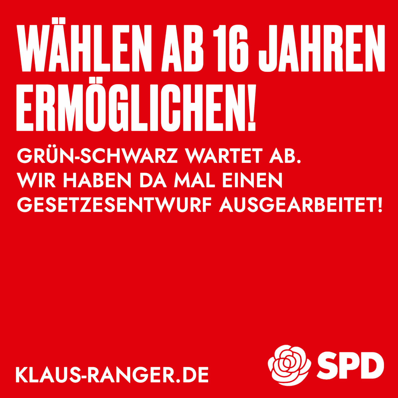 Damit die Senkung des Wahlalters für die Landtagswahl auf 16 Jahre nicht das selbe Schicksal ereilt, haben wir einfach mal einen Gesetzesentwurf beschlossen und werden ihn zeitnah einbringen.